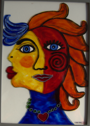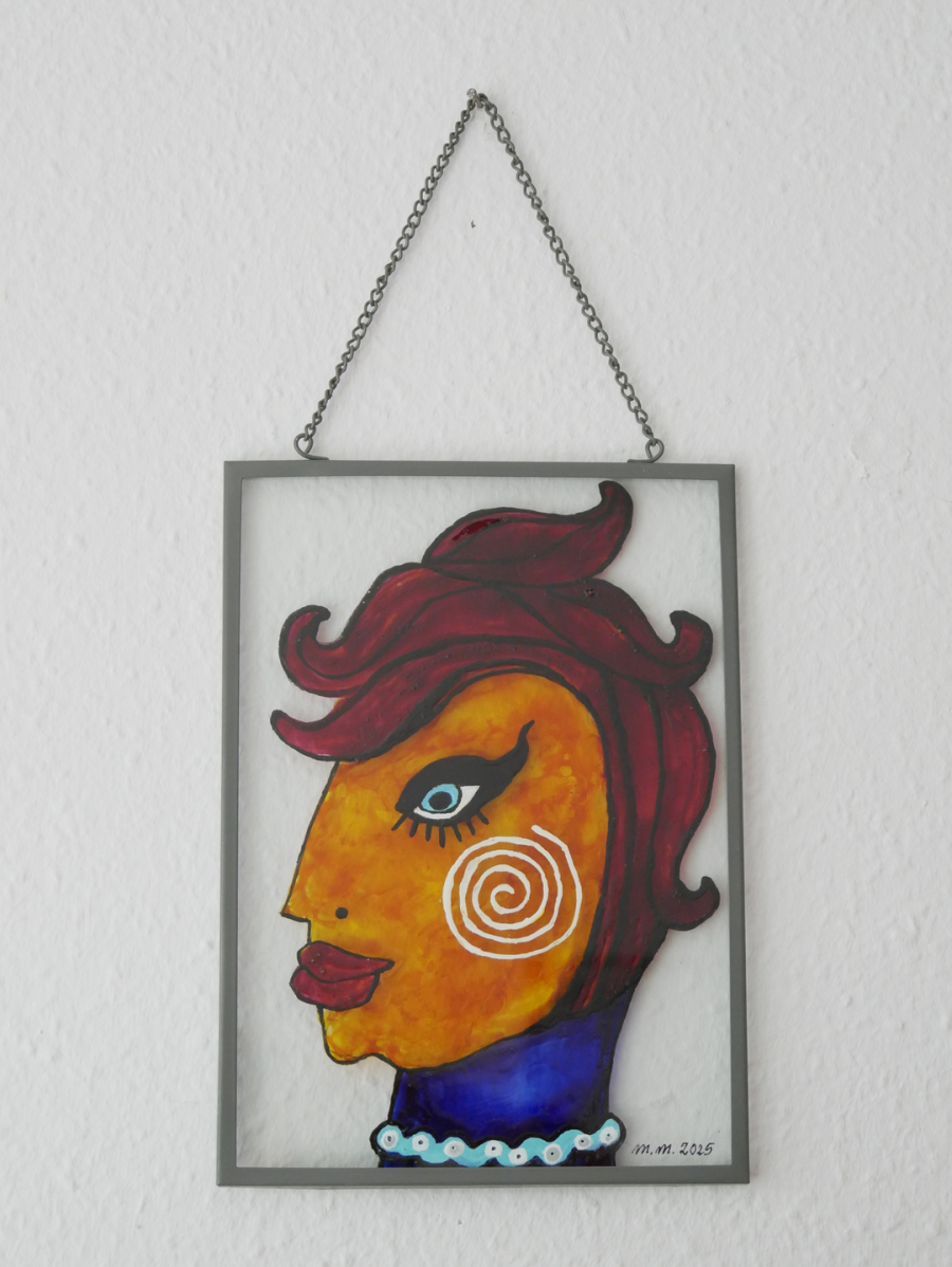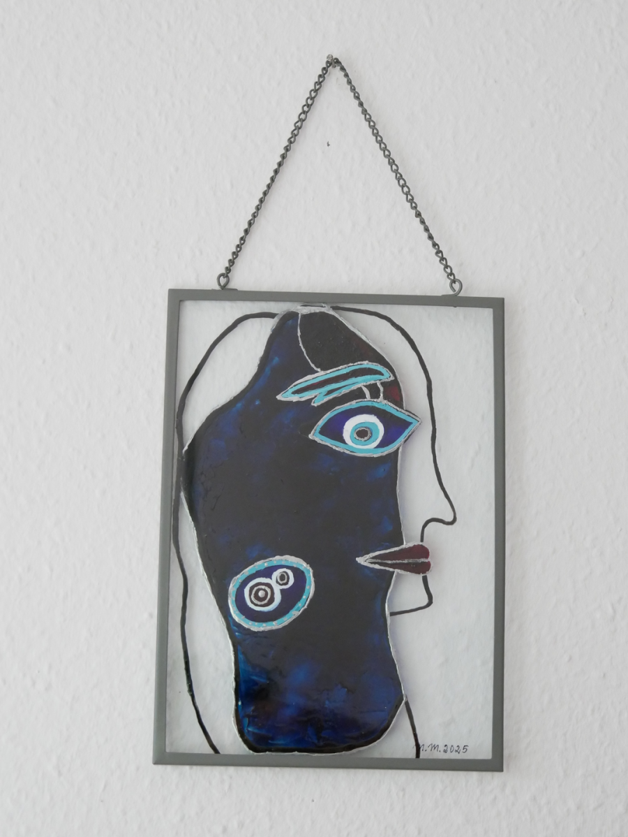 Entstehungsjahr 2023, Glascollage - geschnittenes, geklebtes Glas auf Holzplatte) 35 x 43 cm ohne 46 x 55 cm mit Rahmen