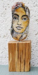 "Träumendes Mädchen" Acryfarben auf Stein 15 x 35 cm - Höhe mit Balken 45 cm 2025