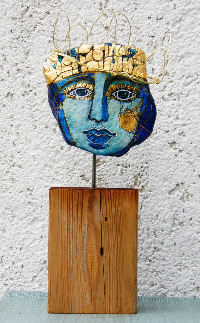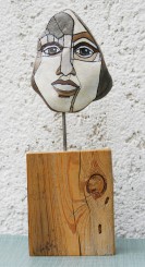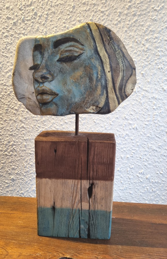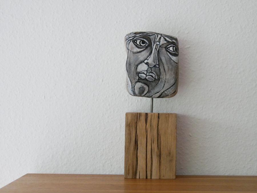 "Melancholie I. " - Acrylfarbe auf Stein 13 x 15 cm - Höhe mit Balken 35 cm 2025