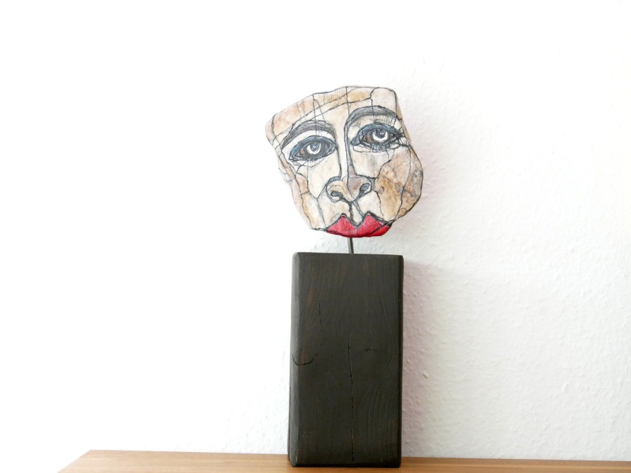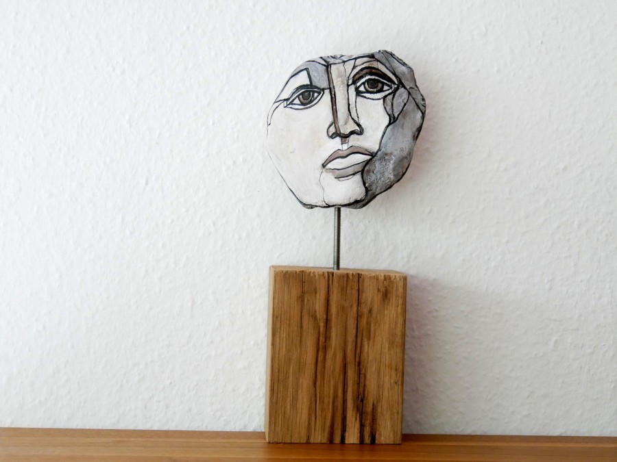 "Melancholie III." - Acrylfarbe auf Stein 15 x 13 cm - Höhe mit Balken 35 cm 2025
